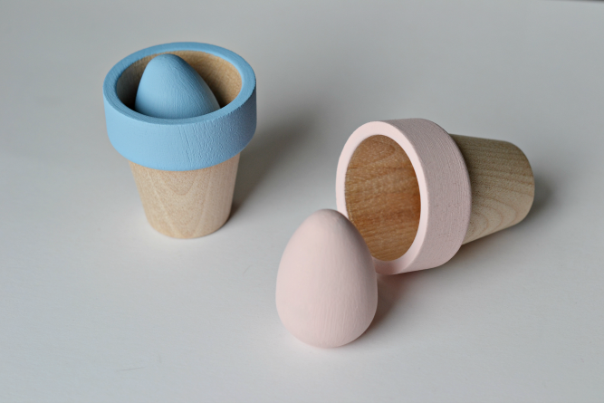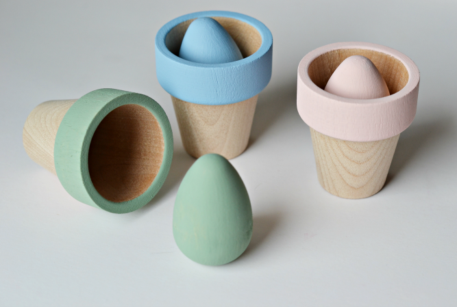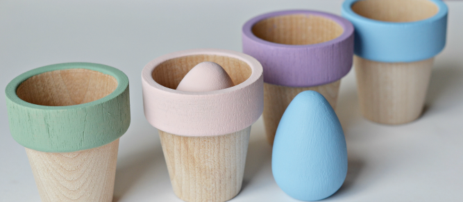 4. Let the wooden eggs and flower pots dry completely. Hand them over to your little one for some educational playtime!